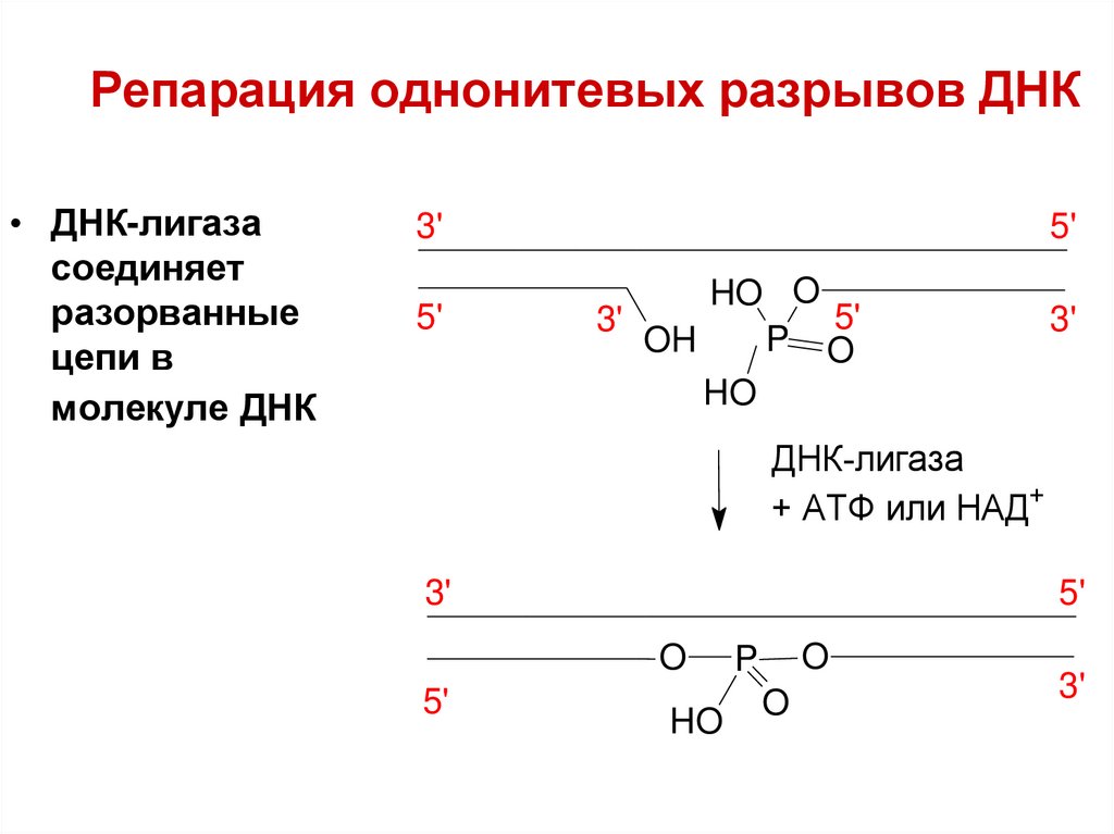 Репарация однонитевых разрывов ДНК• ДНК-лигаза