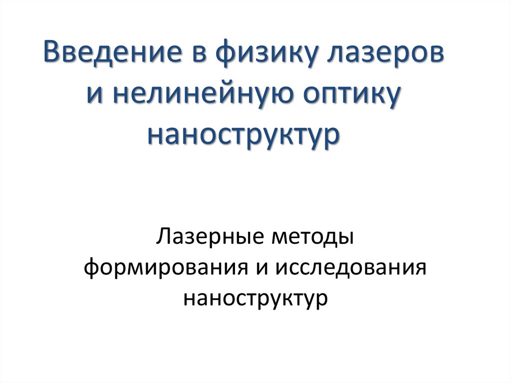 1. Введение в физику лазеров и нелинейную оптику наноструктур
