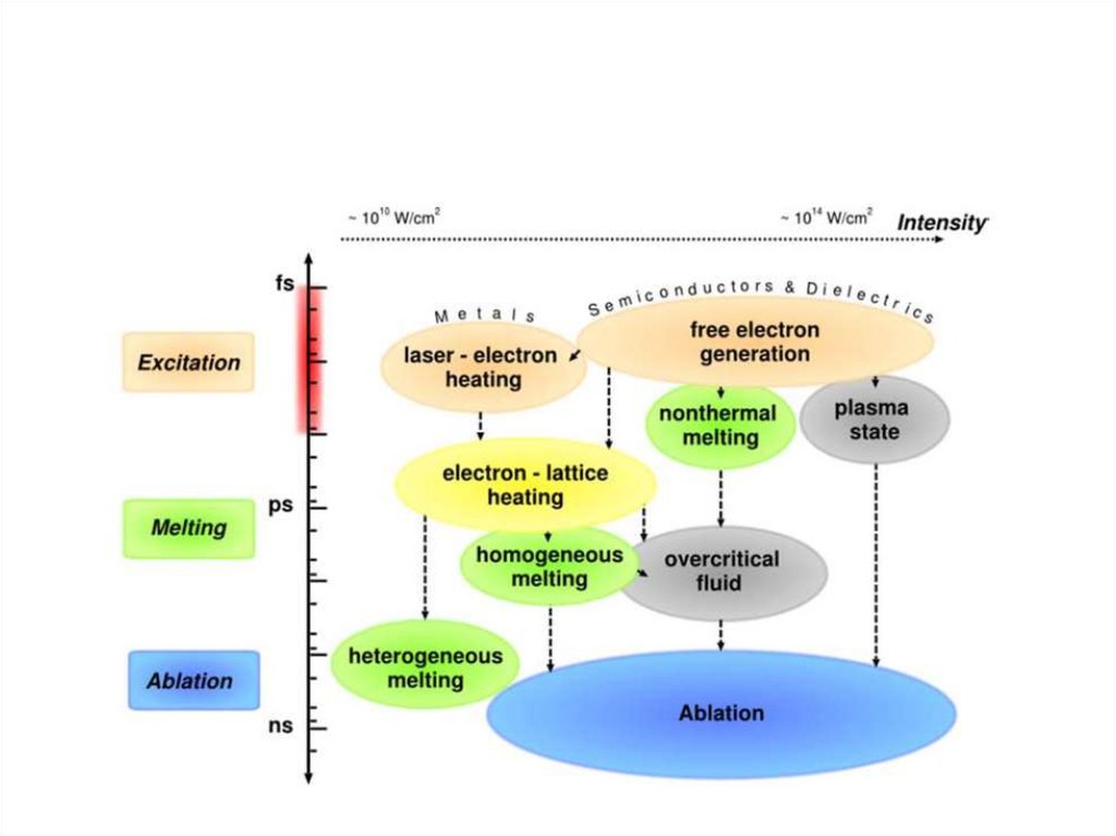 • Взаимодействие лазерного излучения с твердымтелом: временная шкала