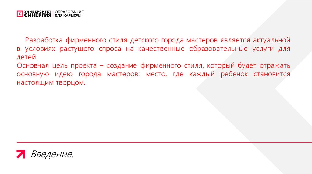 Разработка фирменного стиля детского города мастеров является актуальнойв условиях растущего спроса на качественные образовательные услуги для