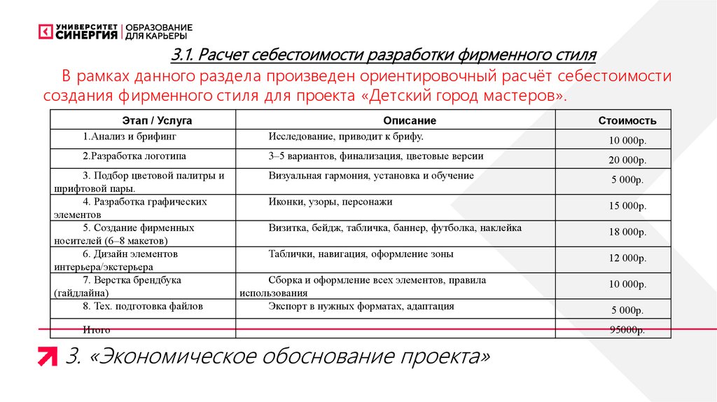 3.1. Расчет себестоимости разработки фирменного стиляВ рамках данного раздела произведен ориентировочный расчёт себестоимости