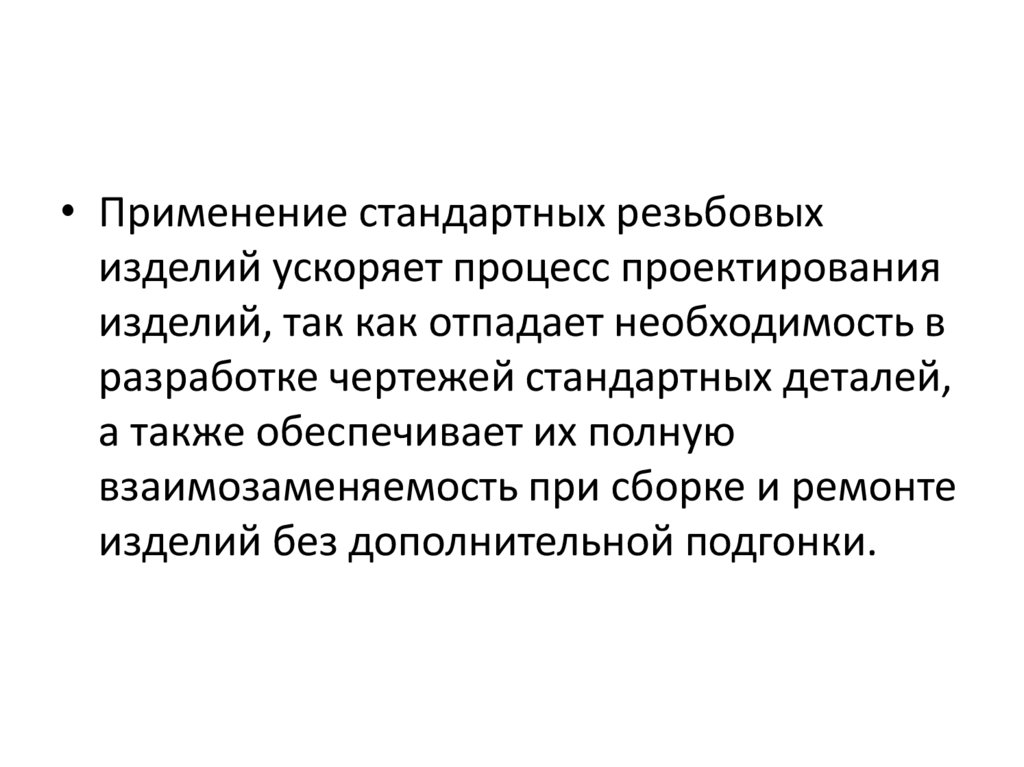 • Применение стандартных резьбовыхизделий ускоряет процесс проектирования