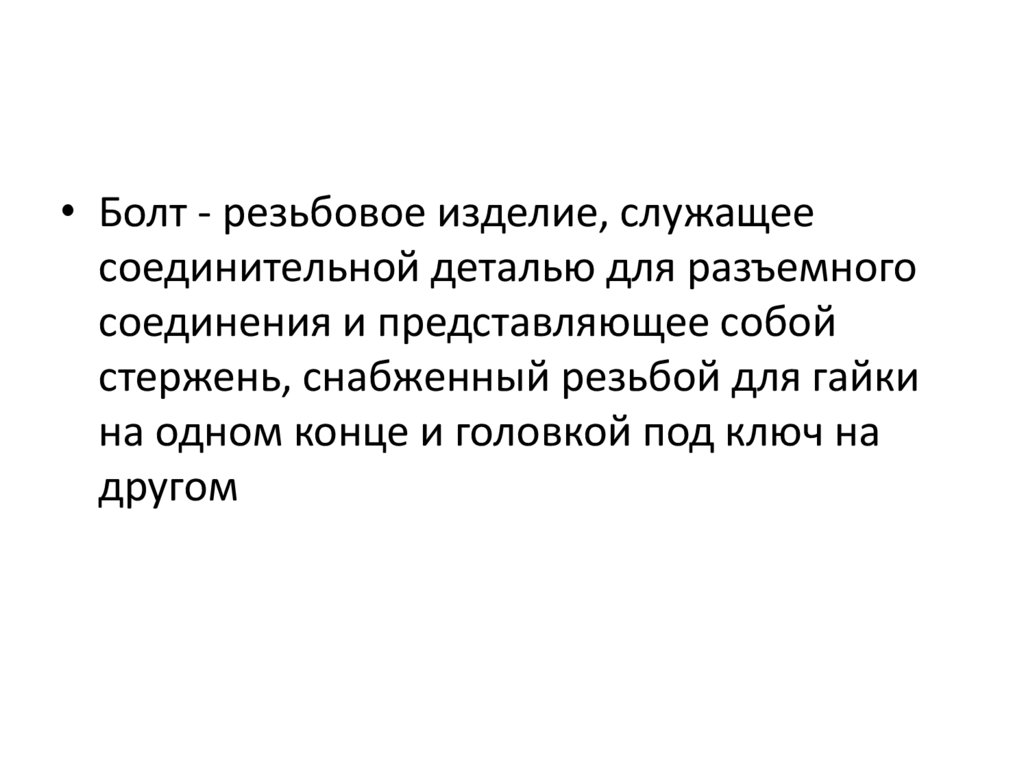 • Болт - резьбовое изделие, служащеесоединительной деталью для разъемного