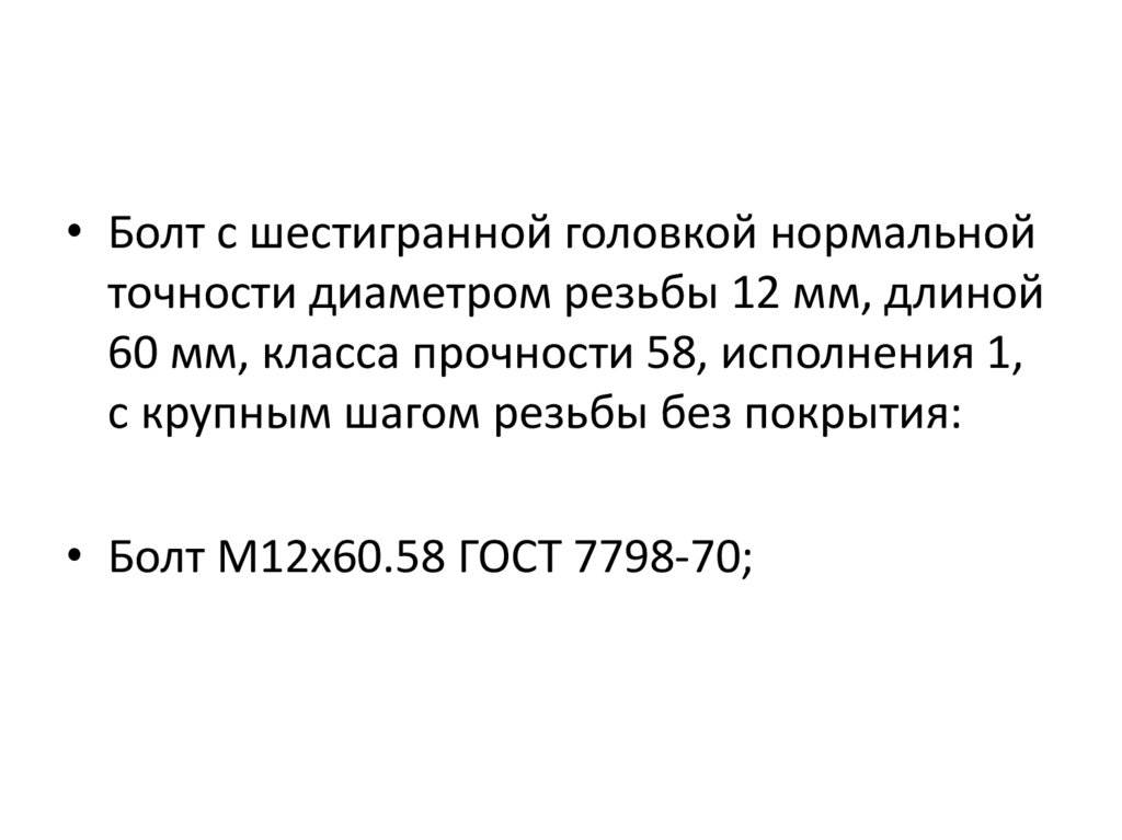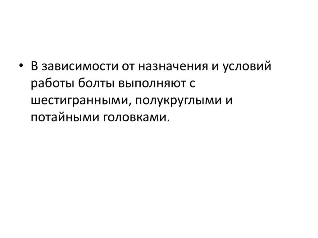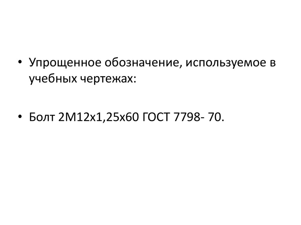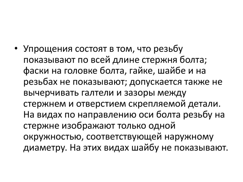 • Упрощения состоят в том, что резьбупоказывают по всей длине стержня болта;