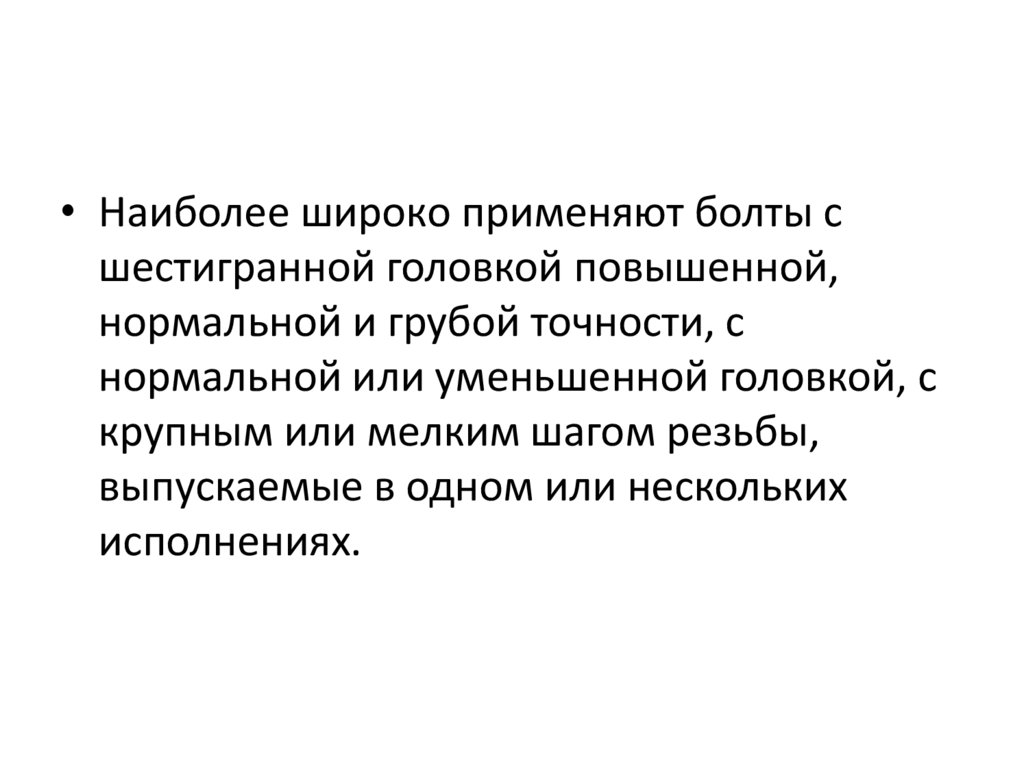• Наиболее широко применяют болты сшестигранной головкой повышенной,