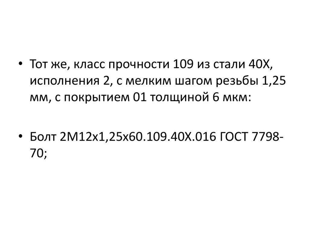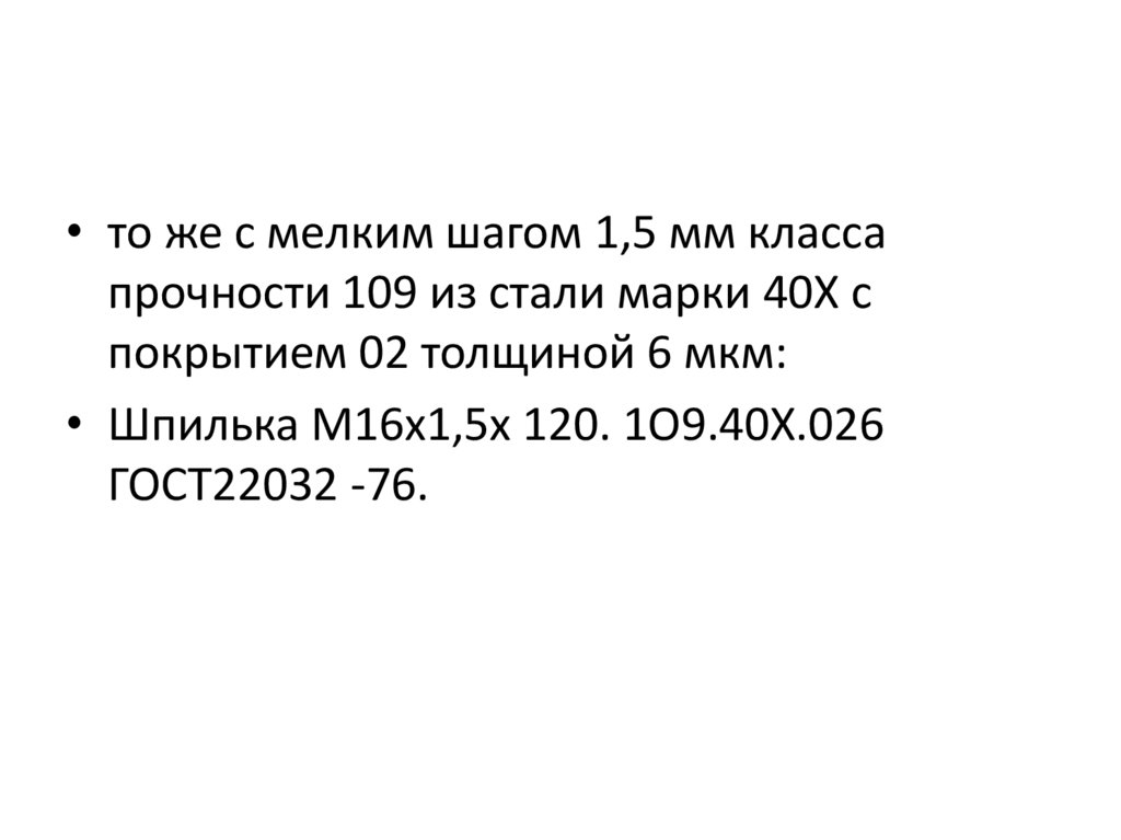 • то же с мелким шагом 1,5 мм классапрочности 109 из стали марки 40Х с
