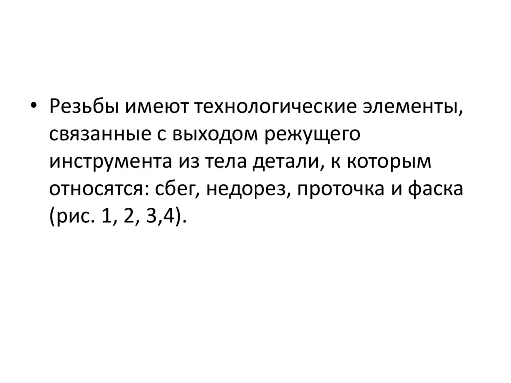 • Резьбы имеют технологические элементы,связанные с выходом режущего