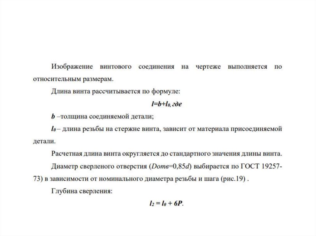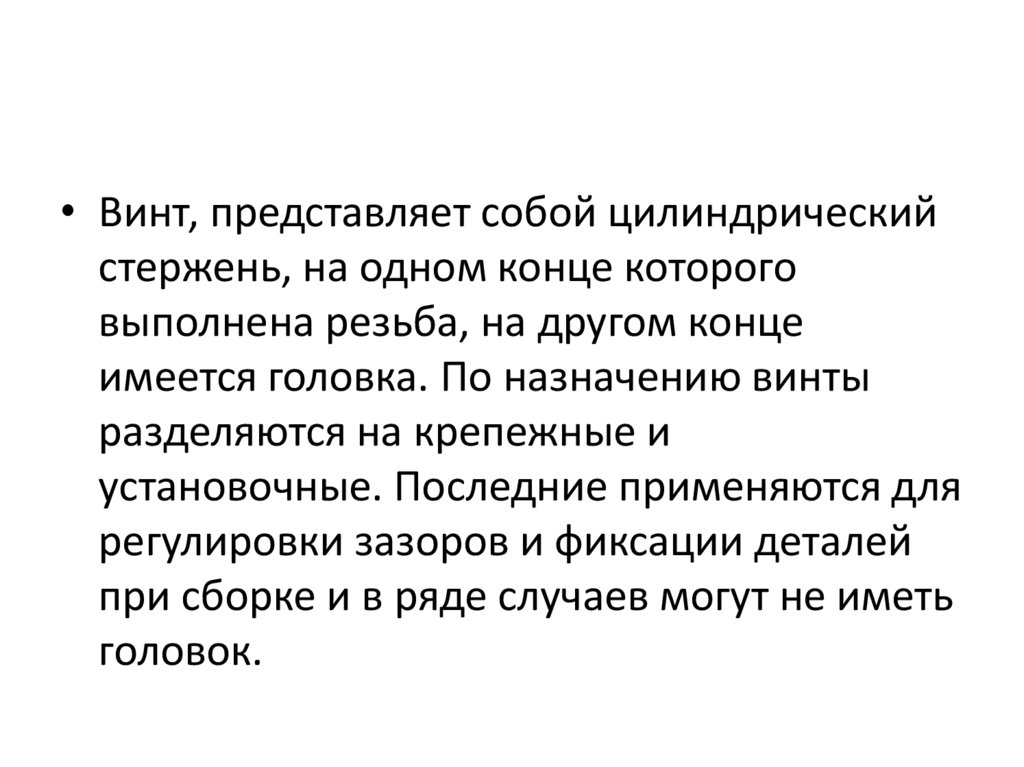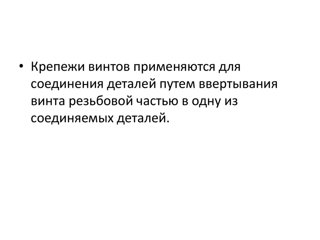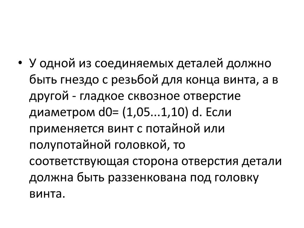 • У одной из соединяемых деталей должнобыть гнездо с резьбой для конца винта, а в
