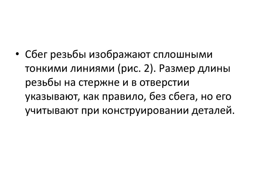 • Сбег резьбы изображают сплошнымитонкими линиями (рис. 2). Размер длины