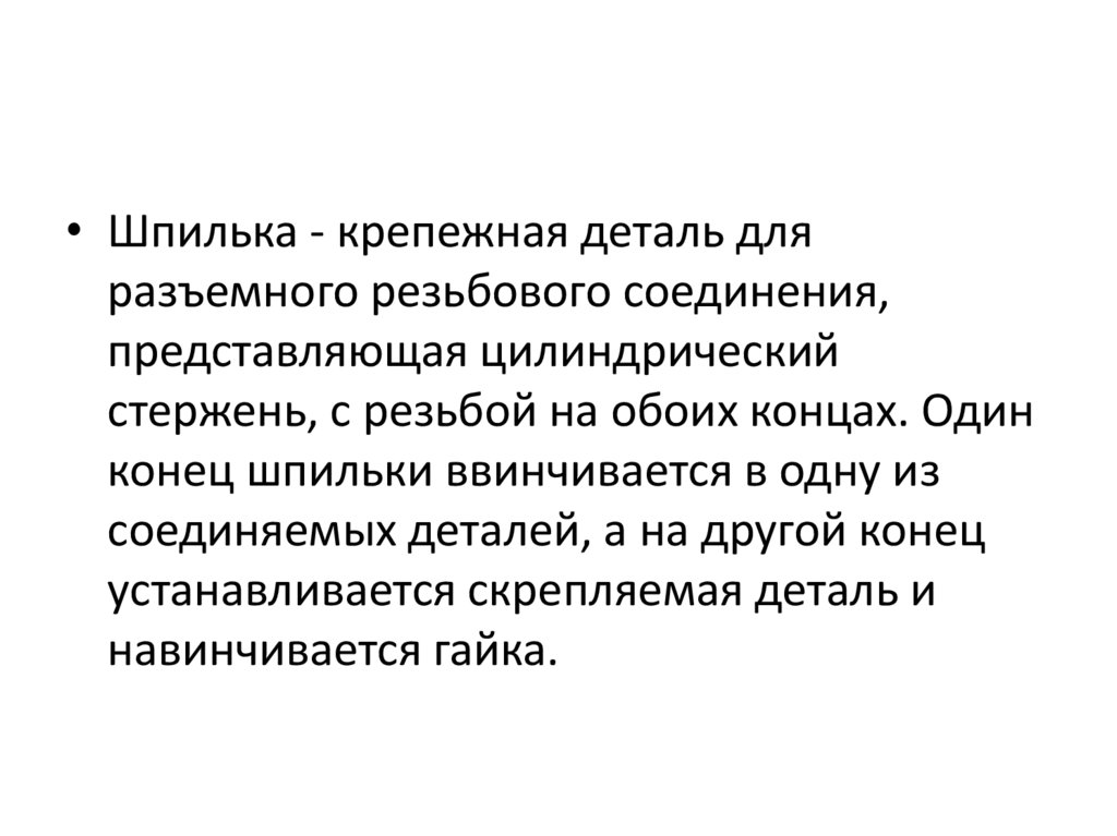 • Шпилька - крепежная деталь дляразъемного резьбового соединения,