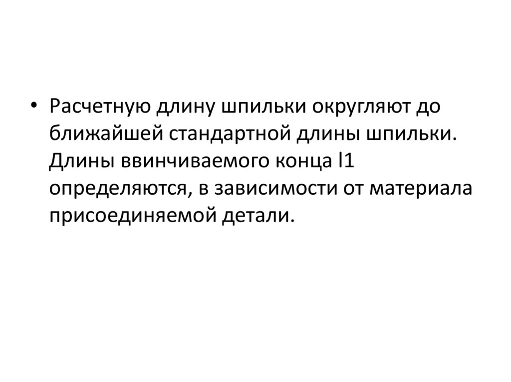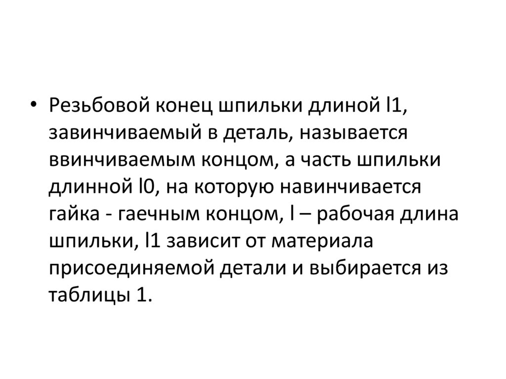 • Резьбовой конец шпильки длиной l1,завинчиваемый в деталь, называется