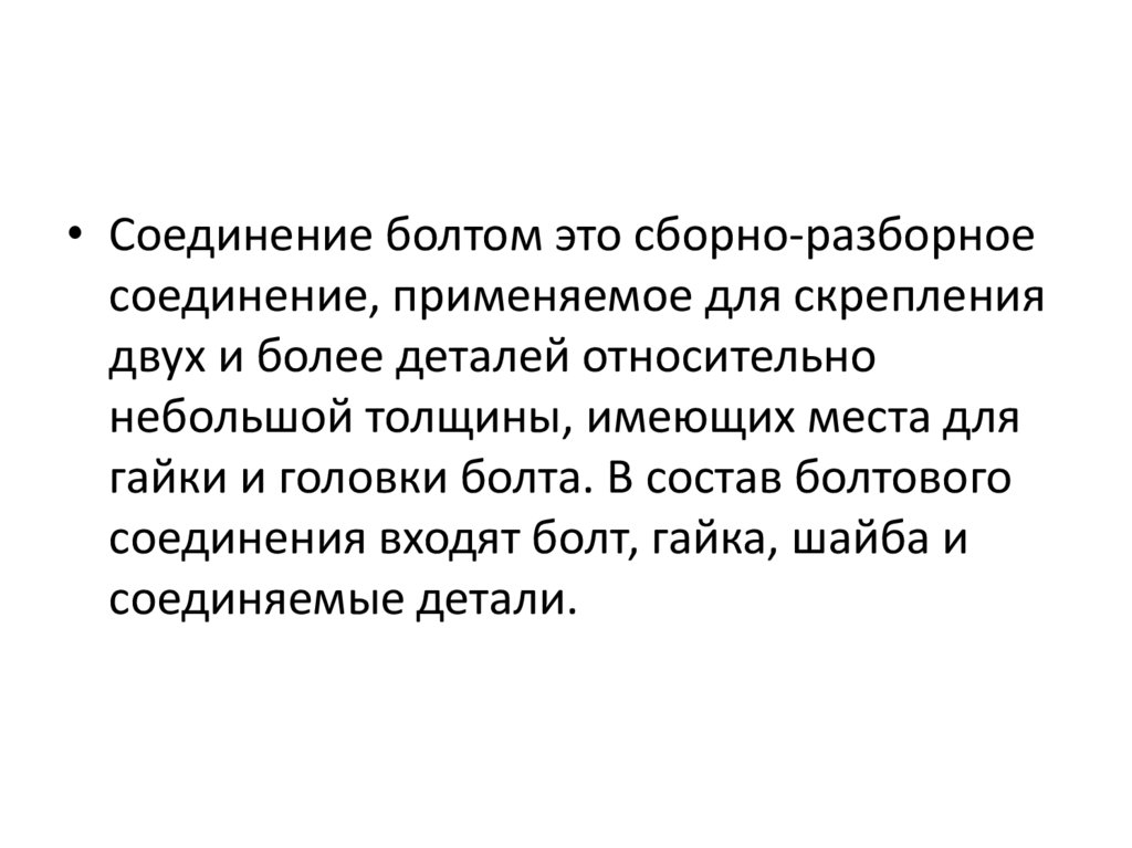 • Соединение болтом это сборно-разборноесоединение, применяемое для скрепления