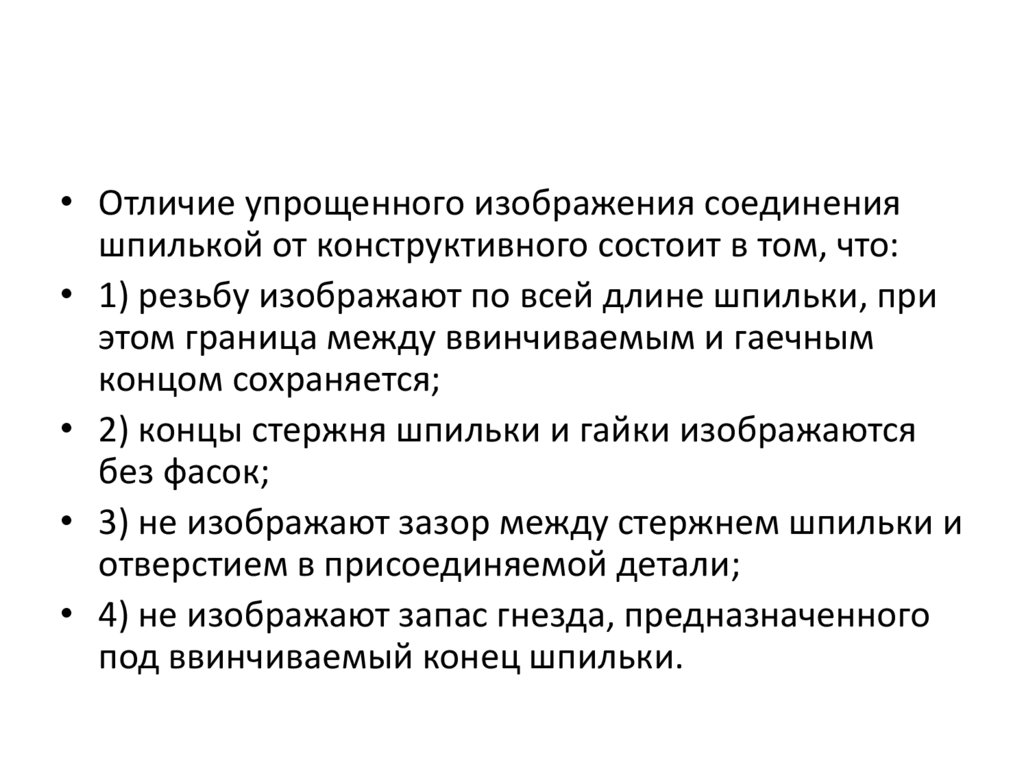 • Отличие упрощенного изображения соединенияшпилькой от конструктивного состоит в том, что: