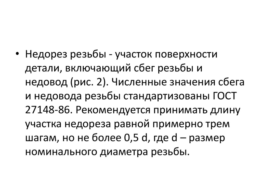 • Недорез резьбы - участок поверхностидетали, включающий сбег резьбы и