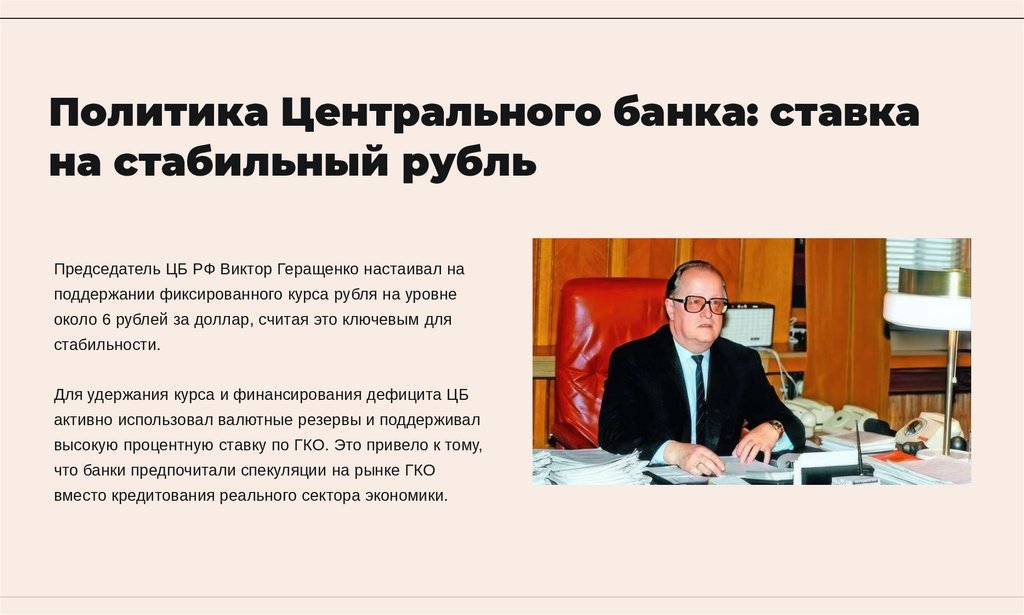Председатель ЦБ РФ Виктор Геращенко настаивал на