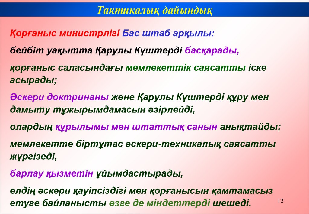 Тактикалық дайындықҚорғаныс министрлігі Бас штаб арқылы: