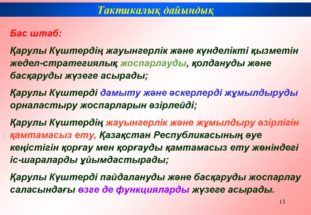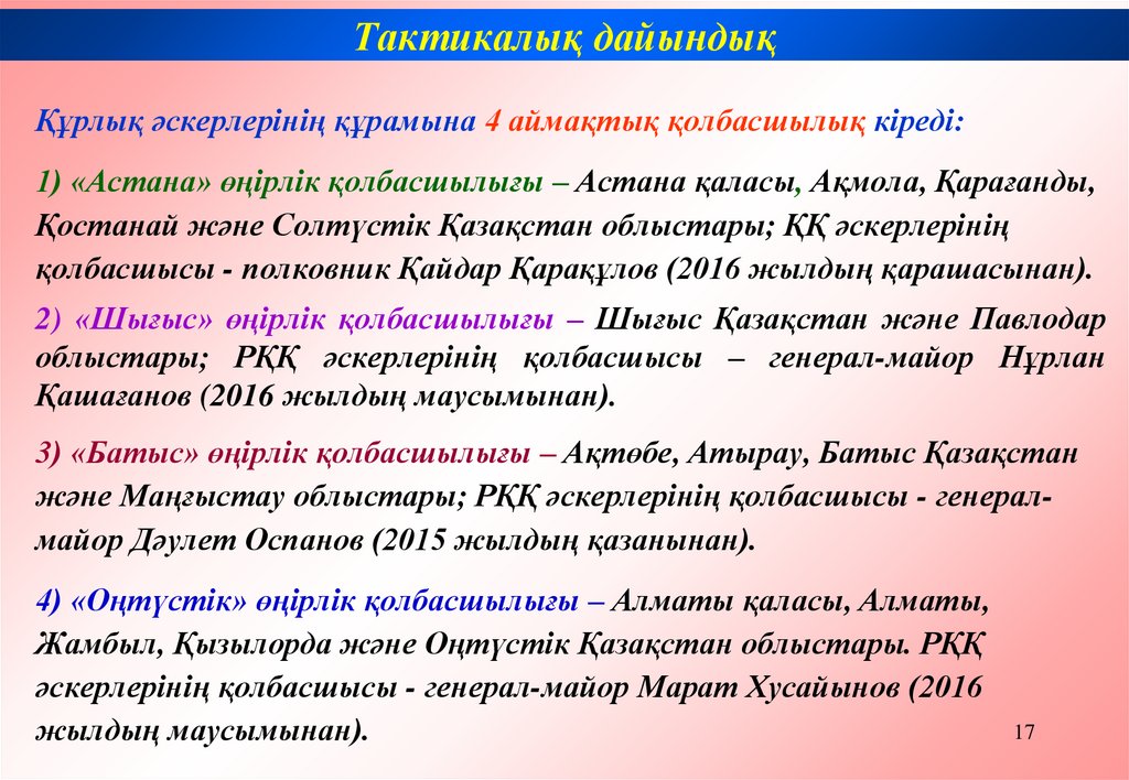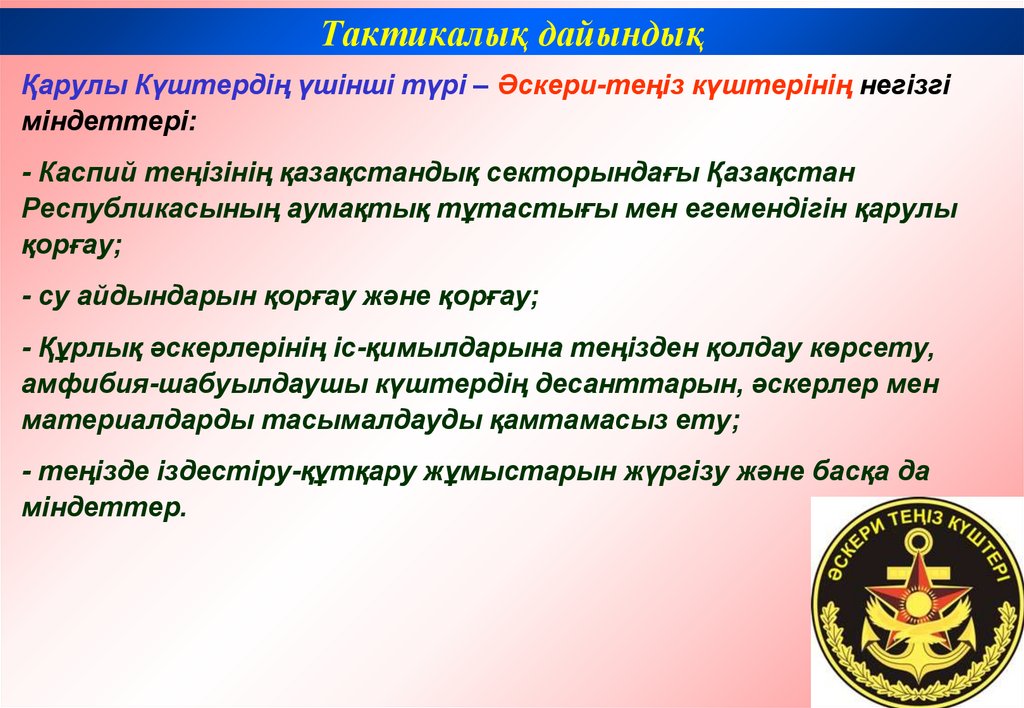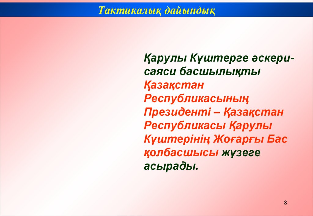 Тактикалық дайындықҚарулы Күштерге әскерисаяси басшылықты