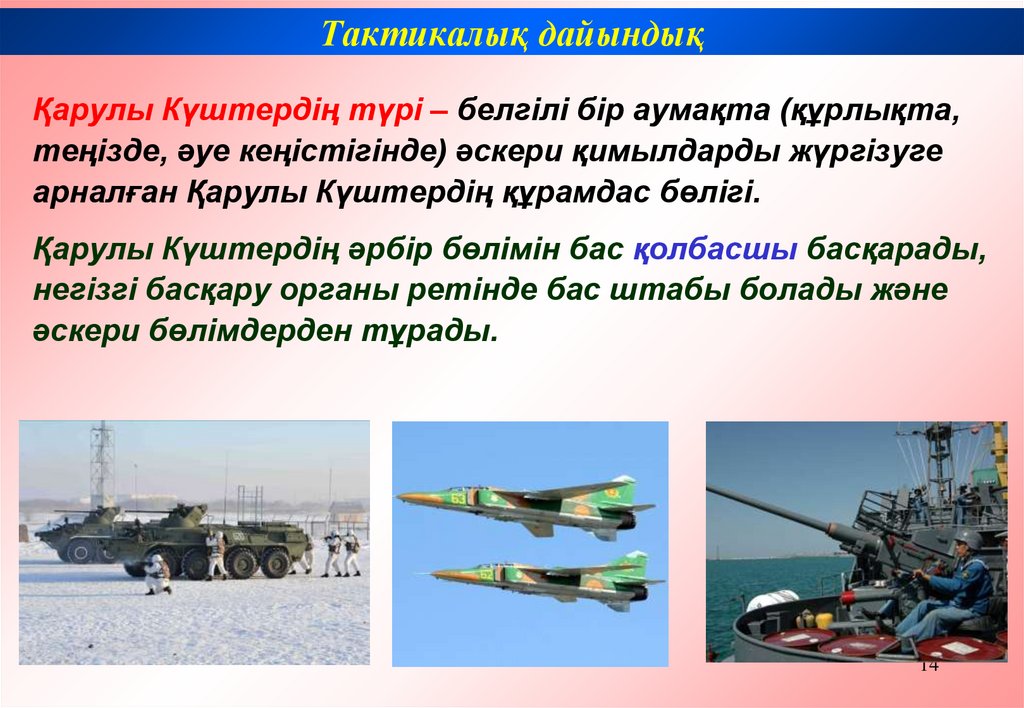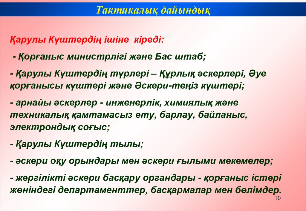 Тактикалық дайындықҚарулы Күштердің ішіне кіреді: