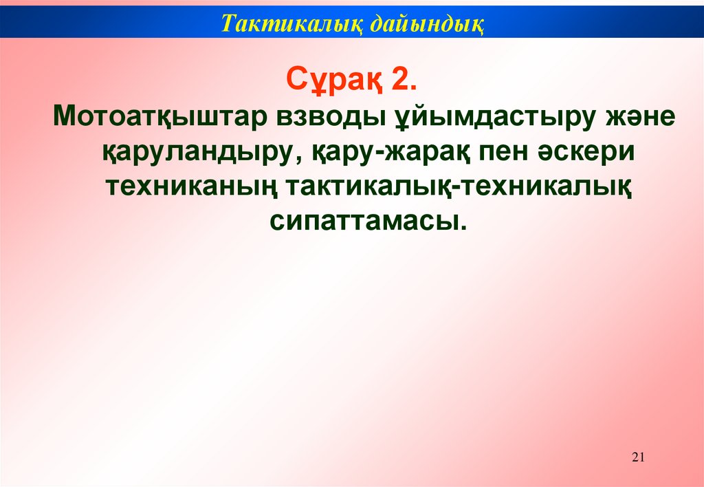 2. Мотоатқыштар взводы ұйымдастыру және