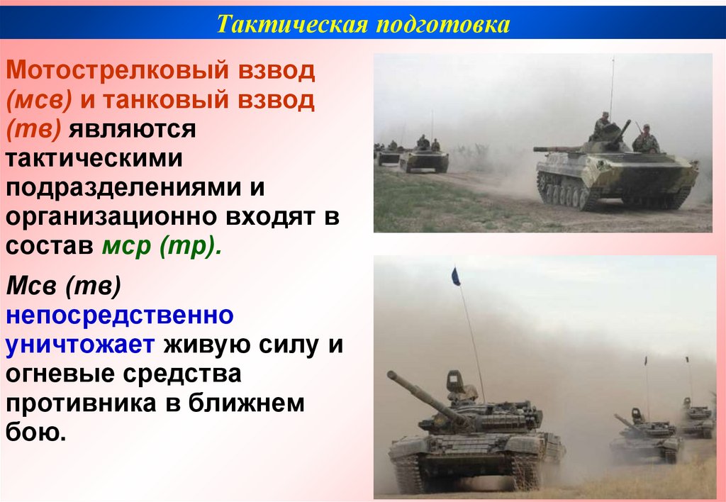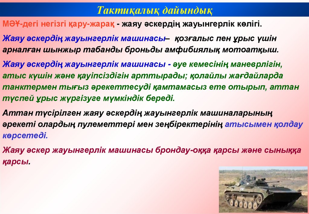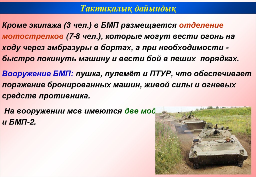 Тактиқалық дайындықТанк взводындағы негізгі қару – танк.