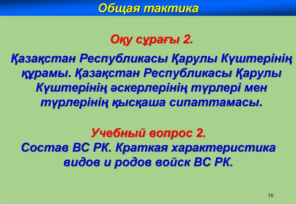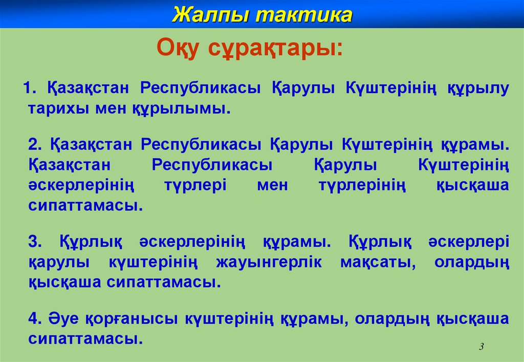 Жалпы тактикаОқу сұрағы 1.