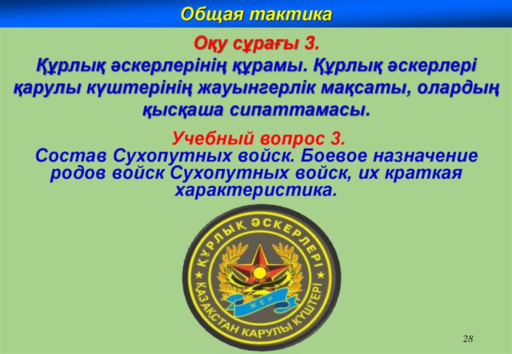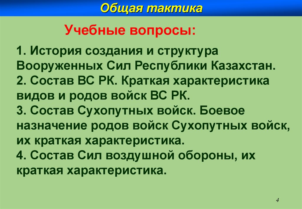 Общая тактикаОқу сұрағы 4.