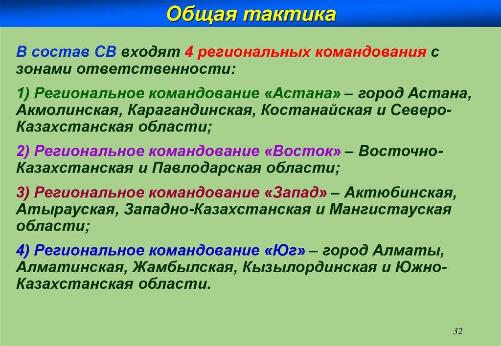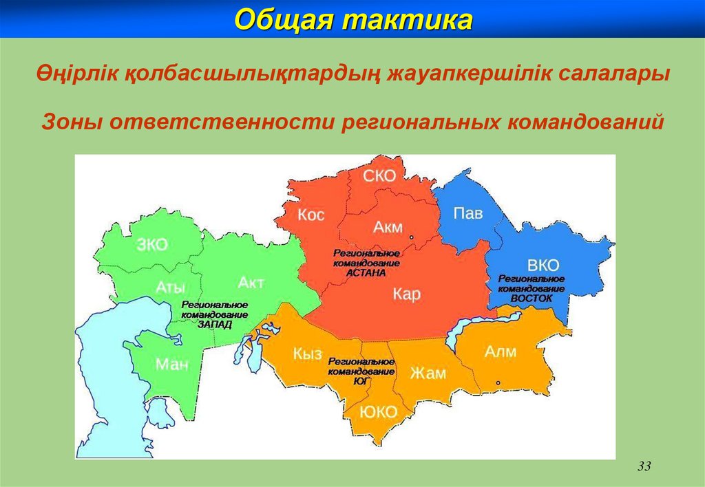 Общая тактикаӨңірлік қолбасшылықтардың жауапкершілік салалары