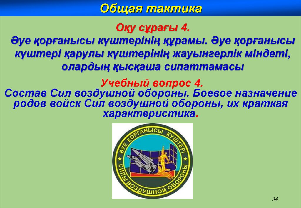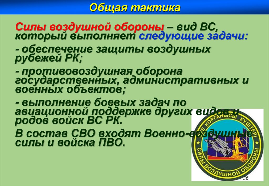 Общая тактикаСилы воздушной обороны – вид ВС,