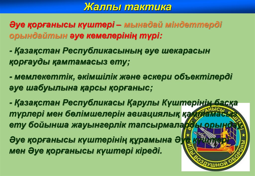 Жалпы тактикаӘуе қорғанысы күштері – мынадай міндеттерді