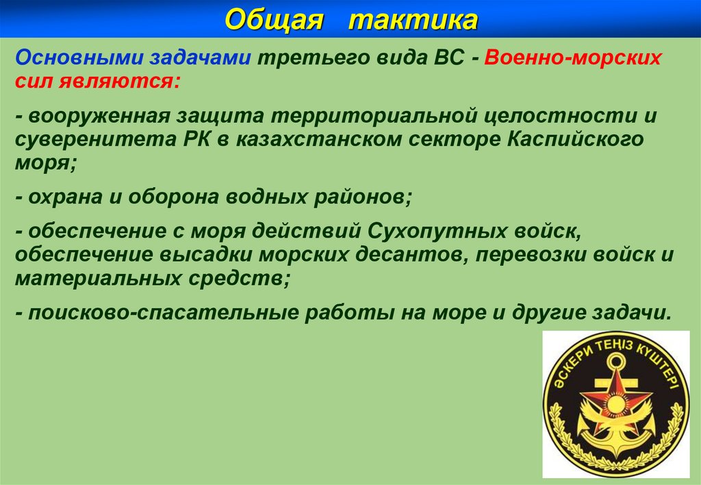 Общая тактикаОсновными задачами третьего вида ВС - Военно-морских