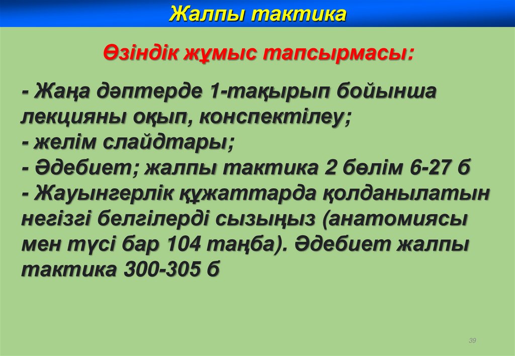 Жалпы тактикаӨзіндік жұмыс тапсырмасы: