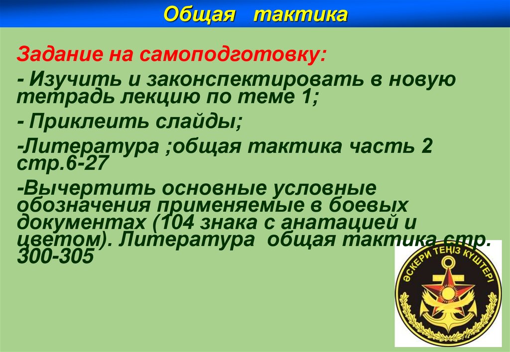 Общая тактикаЗадание на самоподготовку: