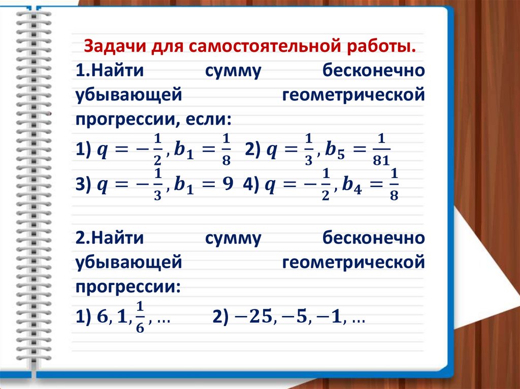 Бесконечно убывающая геометрическая прогрессия (10 класс)