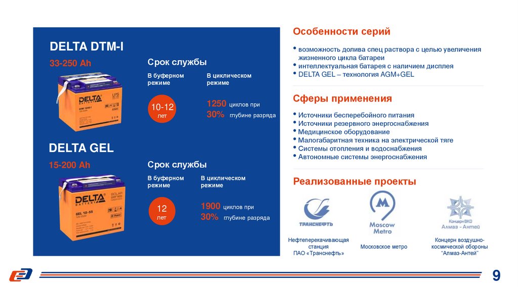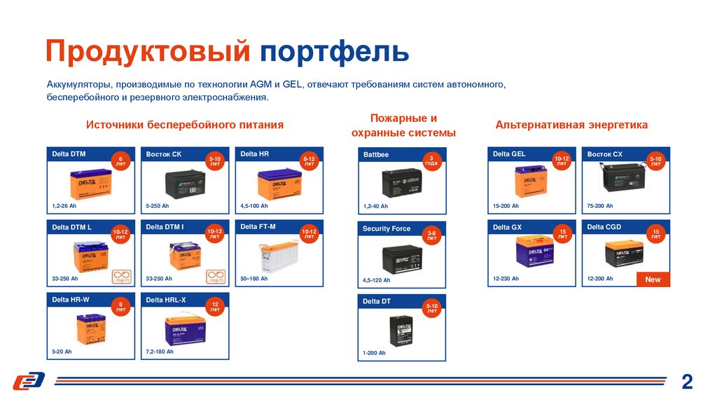 Продуктовый портфельАккумуляторы, производимые по технологии AGM и GEL, отвечают требованиям систем автономного,