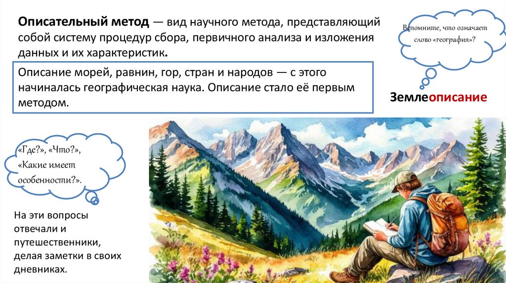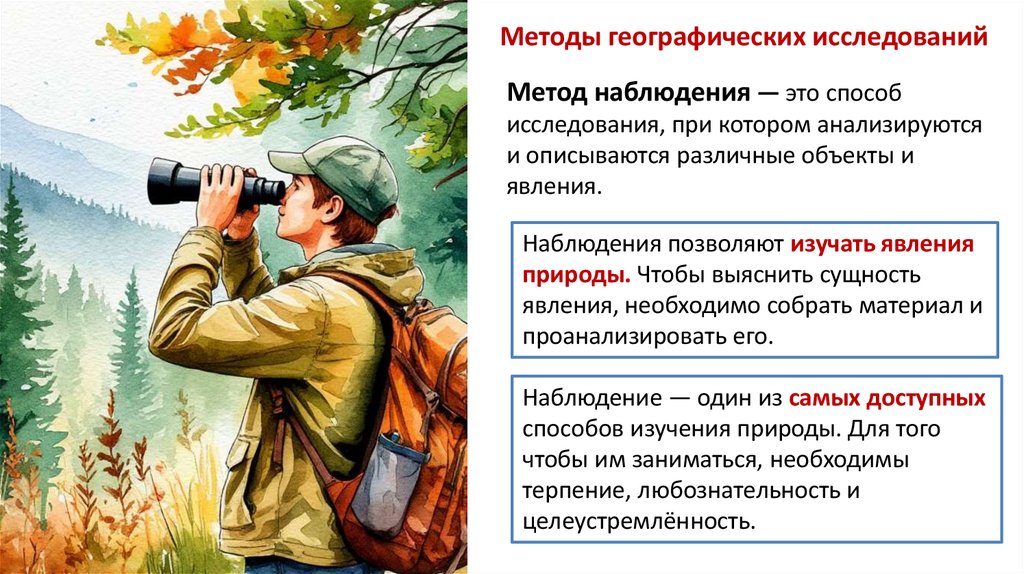 Методы географических исследованийМетод наблюдения — это способ