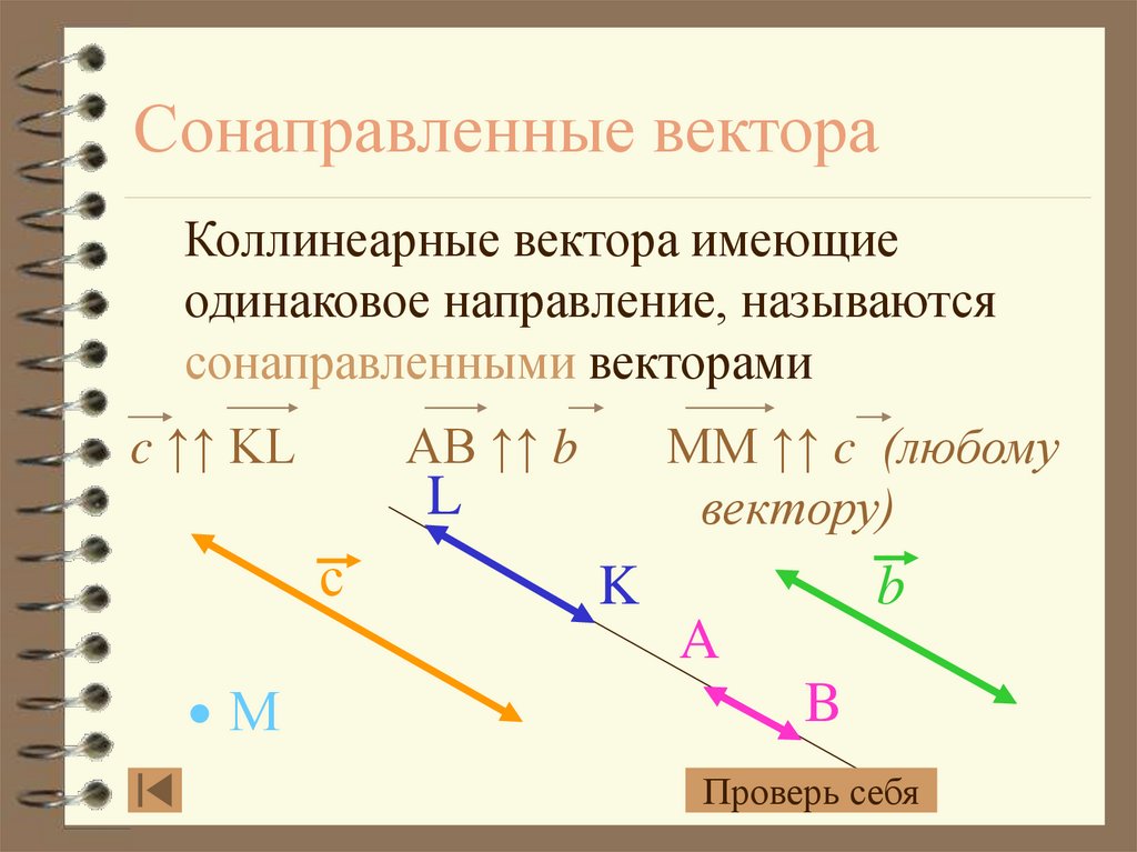 Сонаправленные вектораКоллинеарные вектора имеющие