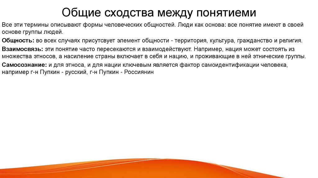 Общие сходства между понятиемиВсе эти термины описывают формы человеческих общностей. Люди как основа: все понятие имеют в своей