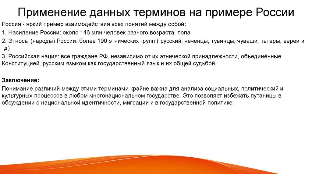 Применение данных терминов на примере РоссииРоссия - яркий пример взаимодействия всех понятий между собой: