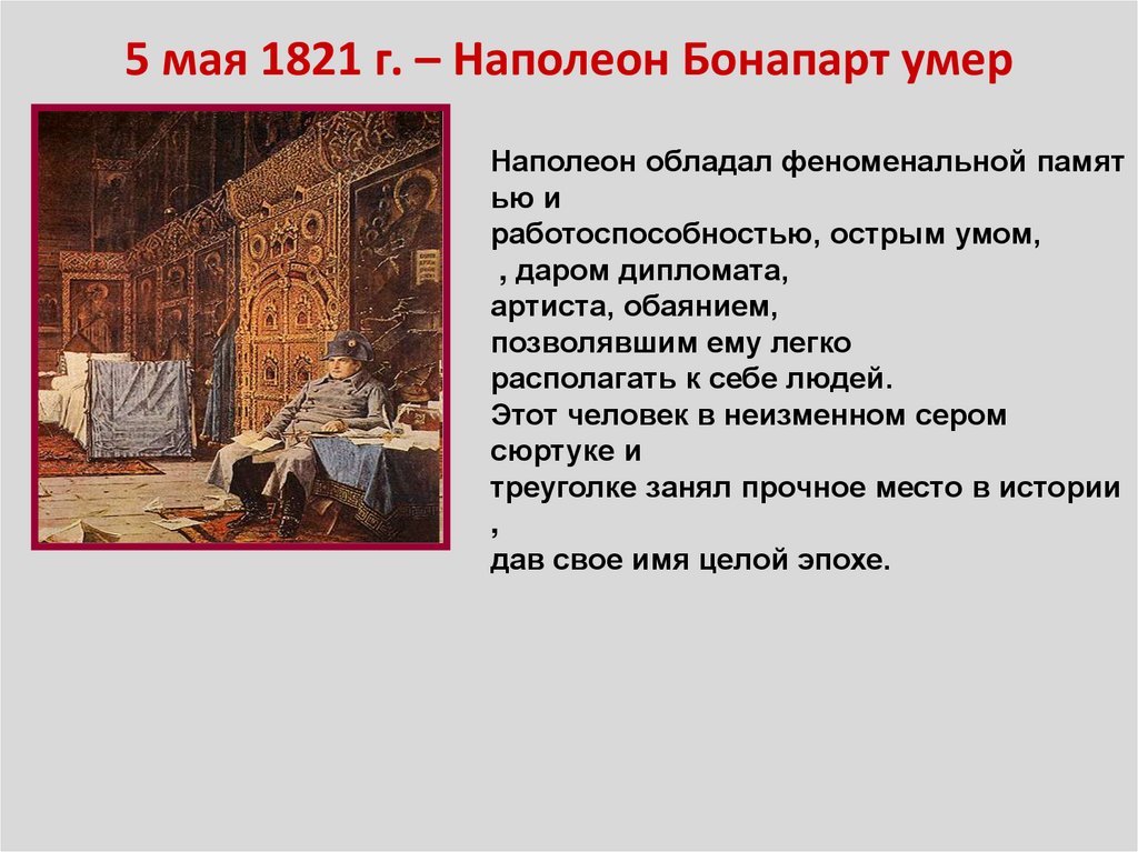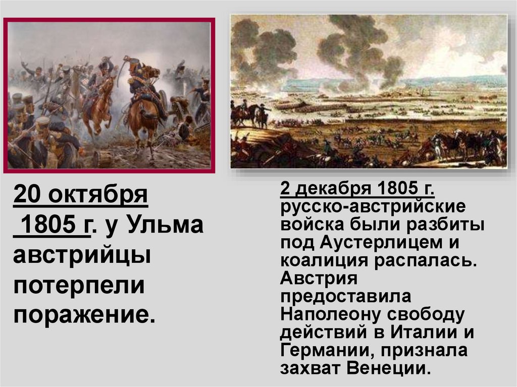 • В 1800 г .Наполеон одержал победу над Австрией в битве