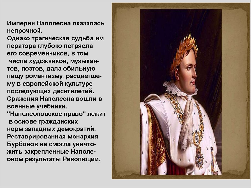 Бурбонов не смогла уничтожить закрепленные Наполеоном результаты Революции.