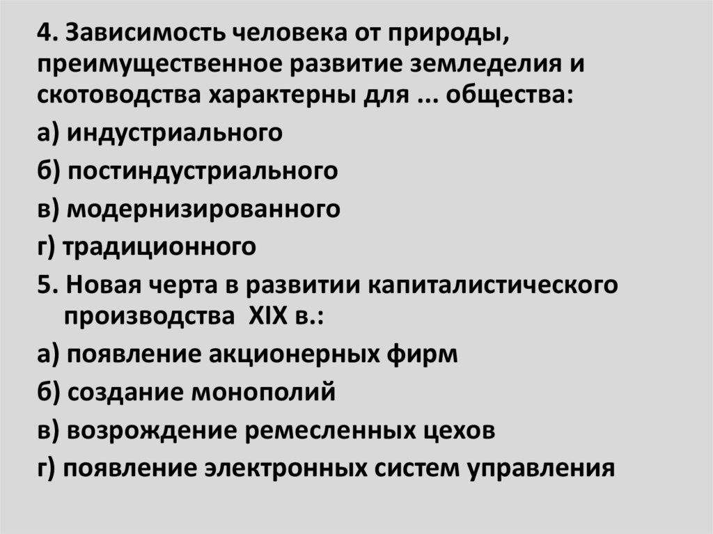 4. Зависимость человека от природы,преимущественное развитие земледелия и