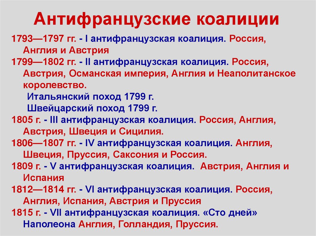 Первая антифранцузская коалиция была создана ещё в 90-е г