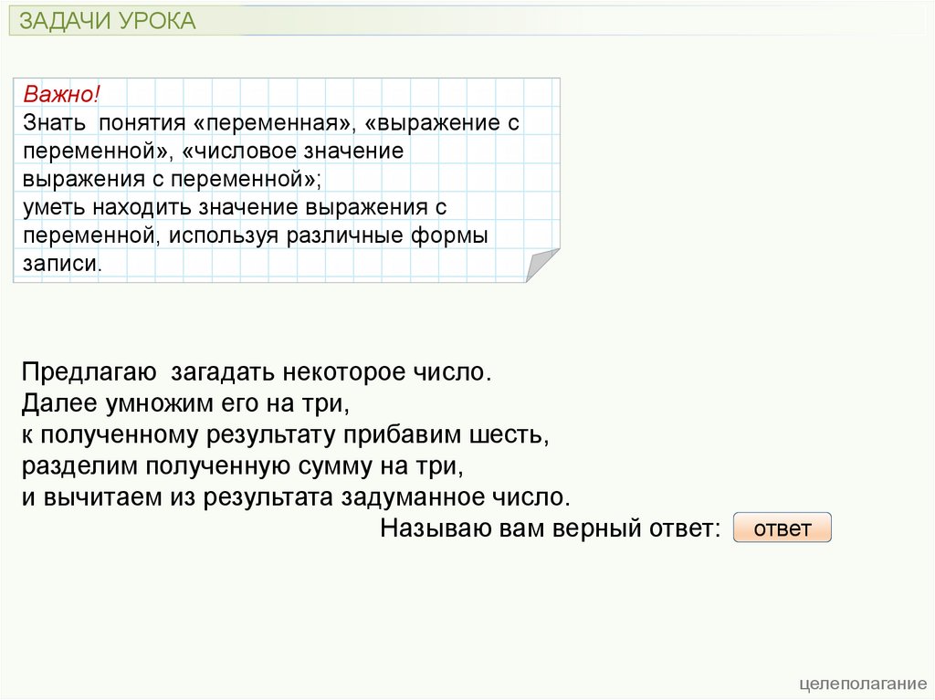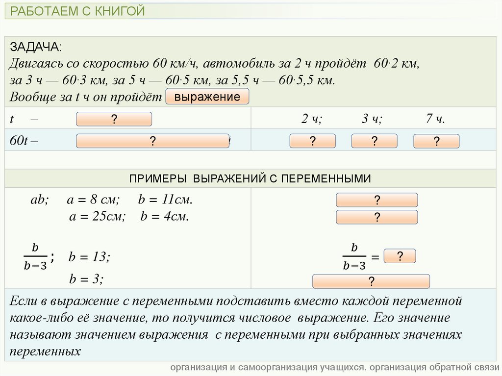 ПРИМЕРЫ ВЫРАЖЕНИЙ С ПЕРЕМЕННЫМИ