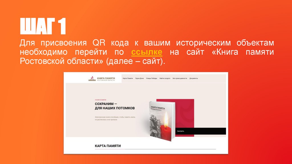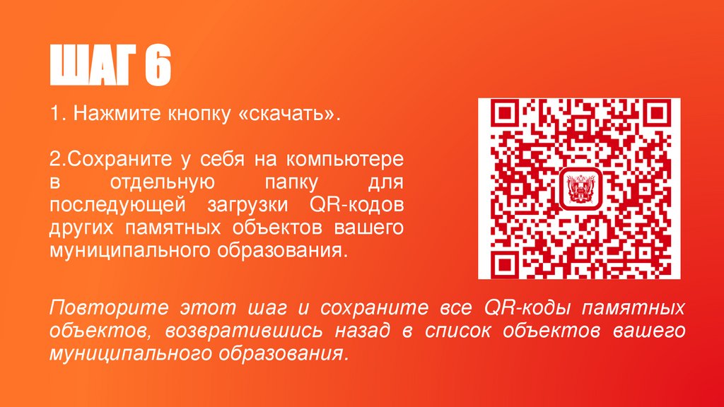 ШАГ 1Для присвоения QR кода к вашим историческим объектам