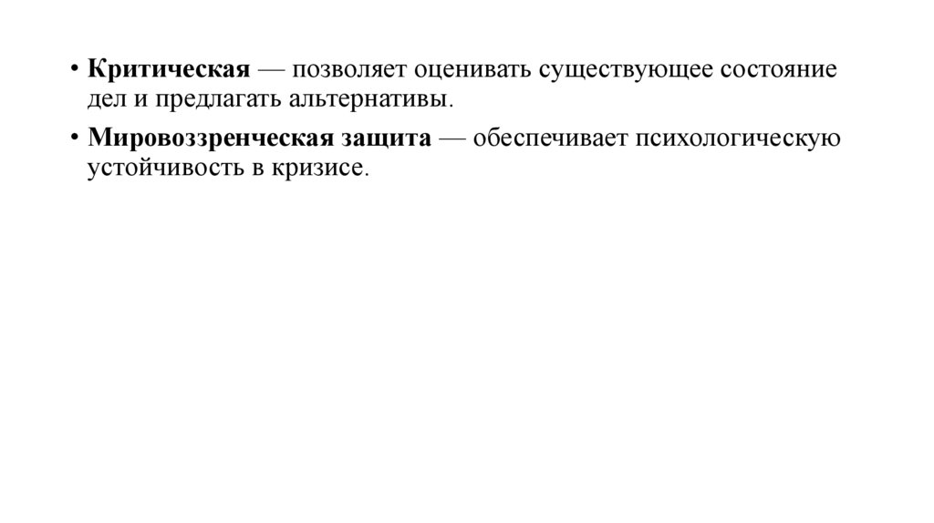 • Критическая — позволяет оценивать существующее состояниедел и предлагать альтернативы.