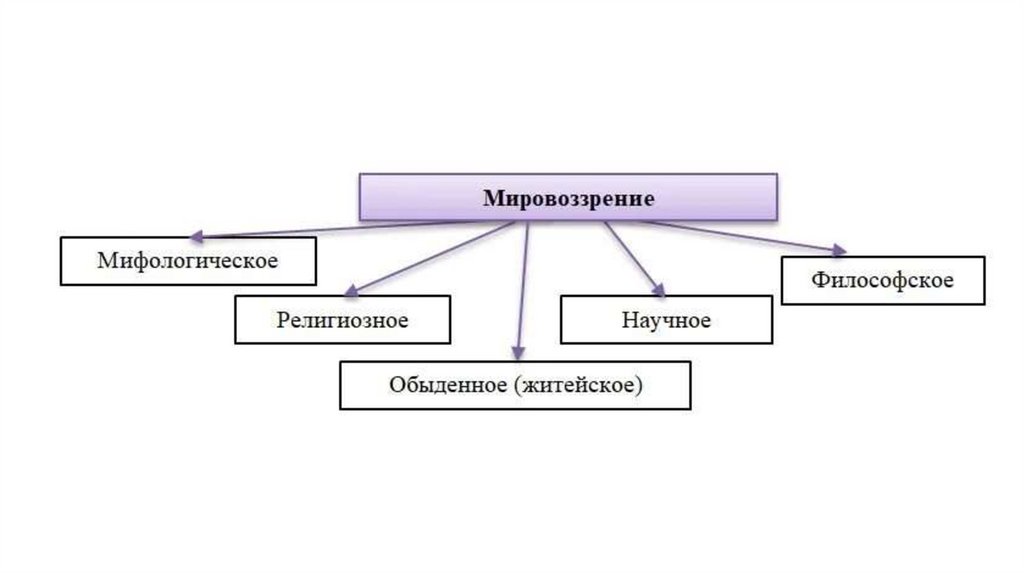 • Мифологическое мировоззрение (первобытность, древность)— племенные мифы, культ природы.