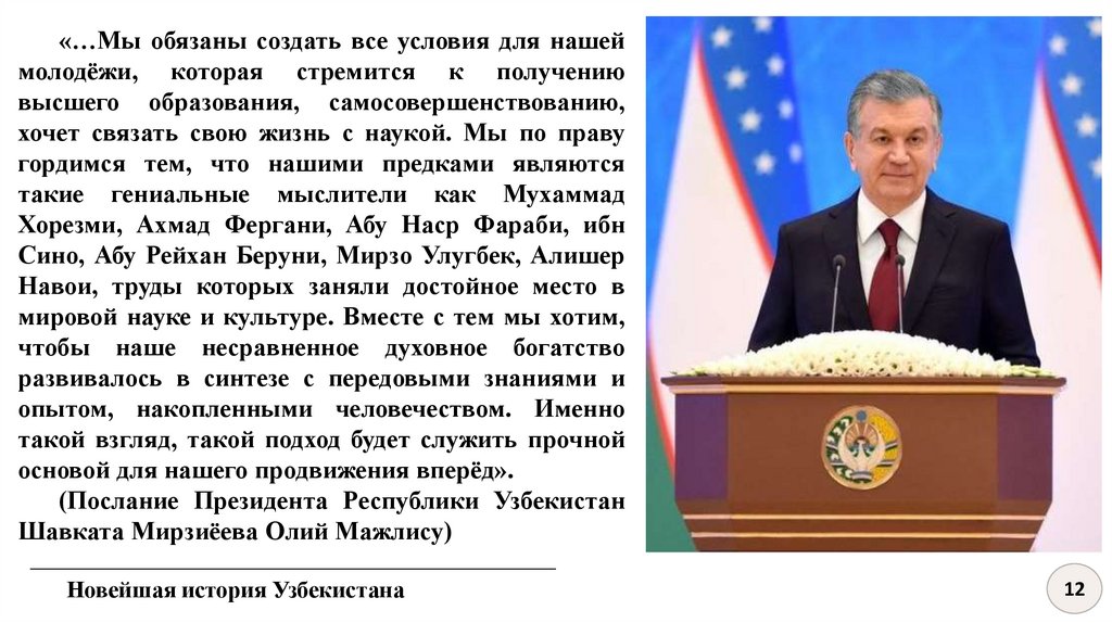 4.Президент Республики Узбекистан Ш.М.Мирзиёев о роли и уроках