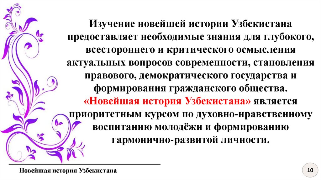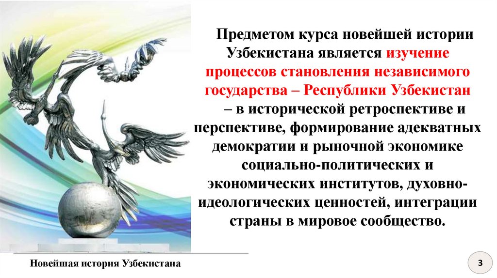 Предметом курса новейшей историиУзбекистана является изучение