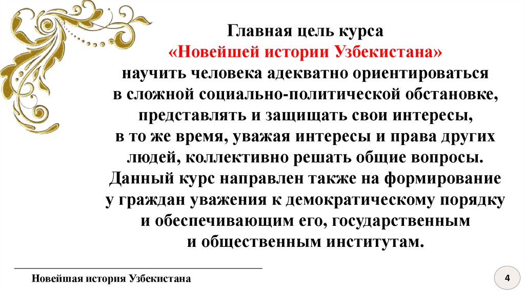 Главная цель курса«Новейшей истории Узбекистана»