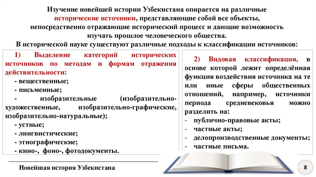 Изучение новейшей истории Узбекистана опирается на различныеисторические источники, представляющие собой все объекты,